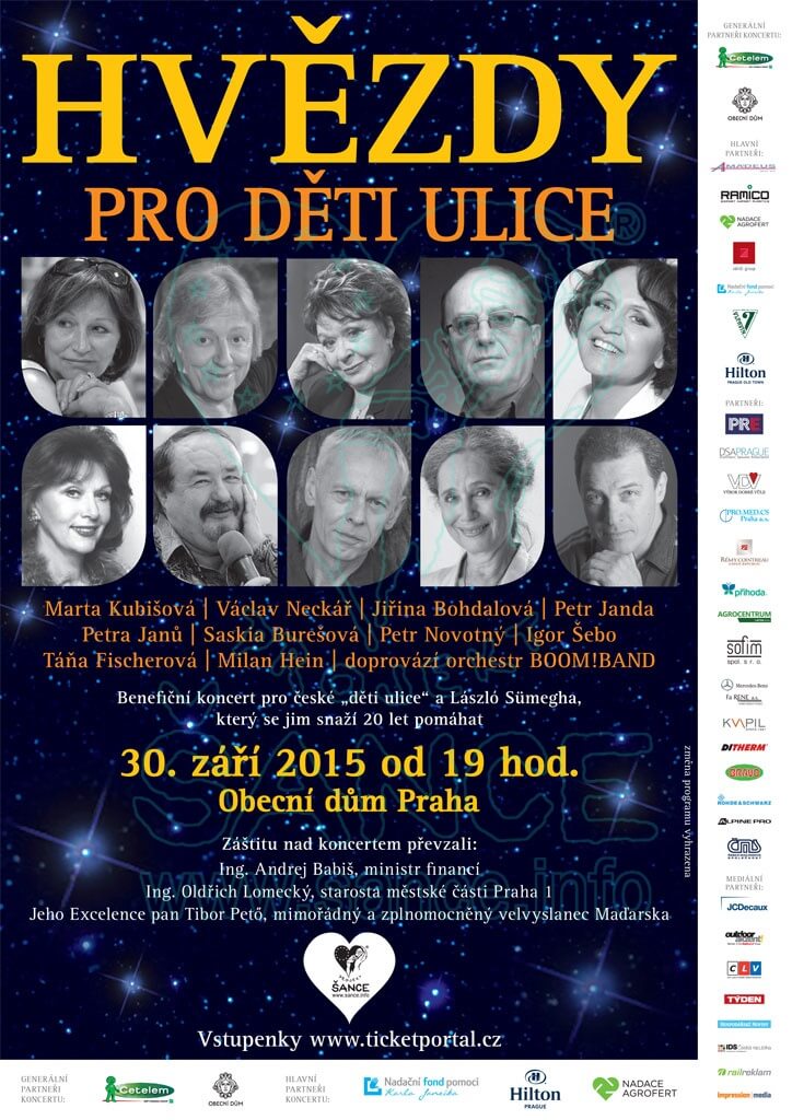 20. září proběhl v Obecním domě v Praze benefiční koncert pro české „děti ulice“ a László Sümegha, který se jim snaží 21 let pomáhat. Ondřej Havelka a jeho Melody Makers byli opět skvělí. Saskia Burešová a Arnošt Goldflam všechny hosty uvítali a na pódiu moderovali i poděkování pro partnery Projektu Šance. Rádi píšeme, že fotografie z koncertu Vám budou samy vyprávět… Když ale vydržíte, budete moci zhlédnout v prosinci i videosestřih z celého koncertu.