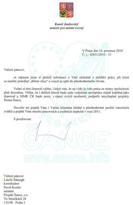 Víme, že naše „děti ulice“ jsou polámané především na duši. Práce s nimi není jednoduchá. Je to běh na dlouhou trať, nebo spíš chůze, při který postupujeme mravenčími krůčky. O to víc nám dělají radost klienti, co TO dají a vrátí se zpátky do běžnýho života. To je pro nás ta největší odměna. Že má ta práce smysl. Že tu nejsme zbytečně.